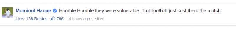 Paris St Germain found themselves a fan in the form of Bangladeshi cricketer Mominul Haque who was shell shocked at the result of the match which took place last night. After the final whistle blew, Mominul took to social media platform Facebook to speak out about the incident which took place in the final minute of the game. He commented on a picture which was posted on the page “Troll Football” and said that they cost PSG the match.