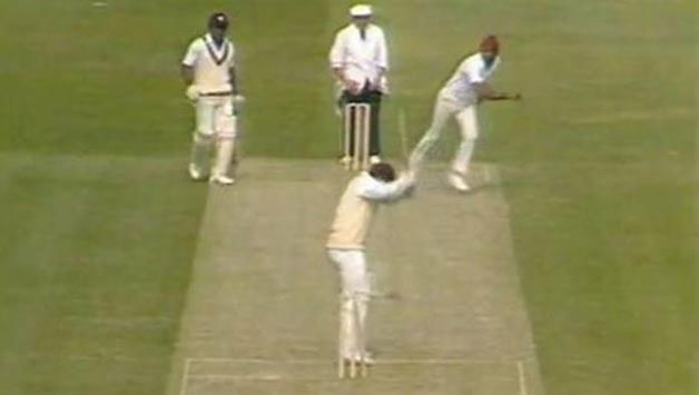 Sandhu bowled a surprise in-swinger (famously called the banana-skin delivery) from close to the stumps. Greenidge shouldered arms expecting the ball to move away, but instead the seam made the ball come in and clip the top of the off-stump.