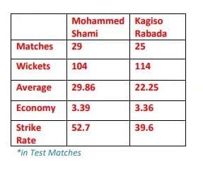 In the ongoing series, Shami has blown a bit hot and cold. He has struggled to find his rhythm. However, when he has settled in his spell, he has picked up wickets in clusters. On the other hand, Rabada has been a lot more consistent.