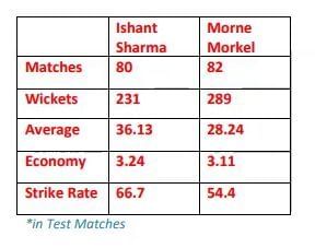 It looks like both Sharma and Morkel are past their prime. Both are no longer considered the leader of their bowling attack. While, Morkel has been plagued by injuries, Ishant has not been able to cement his spot in the side. Comparing both of them, Morkel has an edge as he generates more pace than Sharma and can consistently hit the 140 kmph mark.
