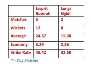 Bumrah, having played more international and franchise cricket as compared to Ngidi, is a lot more mature. Also, he has a bit more pace and several variations in angles which Ngidi lacks. However, keeping the bowling average and strike rate in mind, Lungi Ngidi is comfortably ahead of Bhumrah at this point in time.