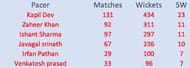 Indian pace spearhead Ishant Sharma equaled Zaheer Khan in an elite list of pacers after his five-wicket haul against New Zealand in the ongoing first Test in Wellington. Sharma claimed the wickets of Tom Latham, Tom Blundell, Ross Taylor, Tim Southee, and Trent Boult, to complete his 11th fifer in Tests, equaling Khan.