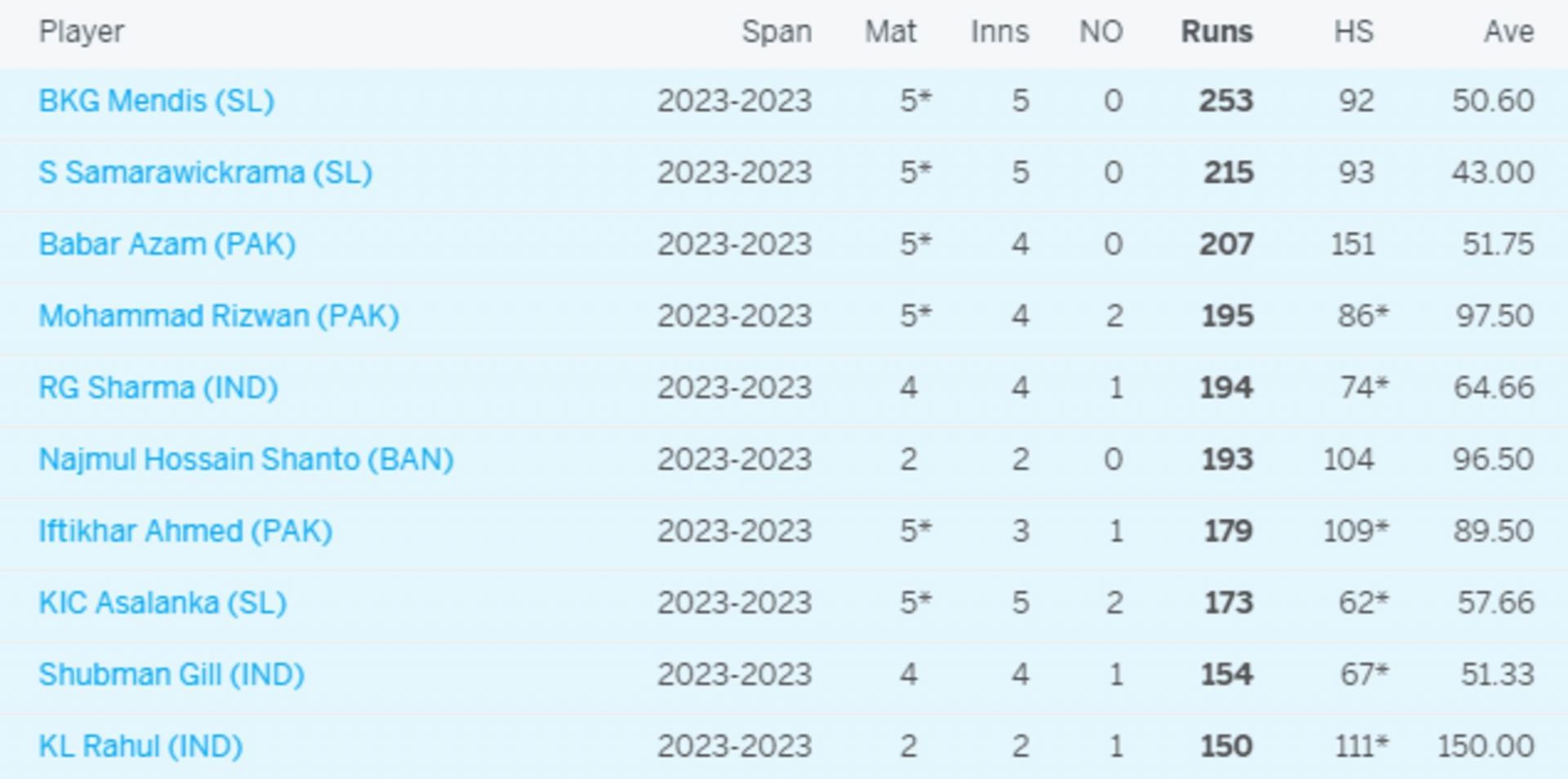 Asia Cup 2023 Most Runs List