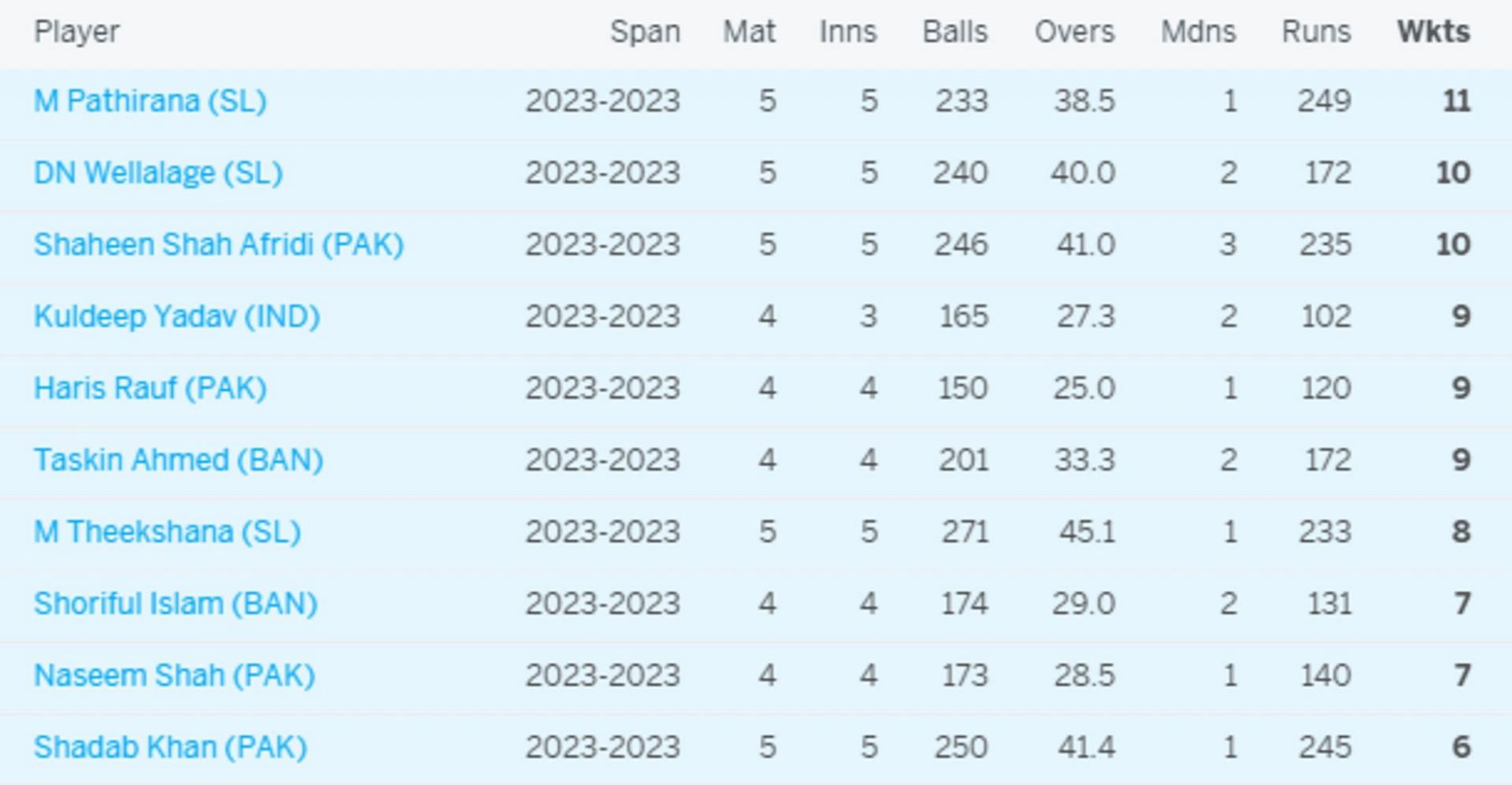 Asia Cup 2023 Most Wickets List