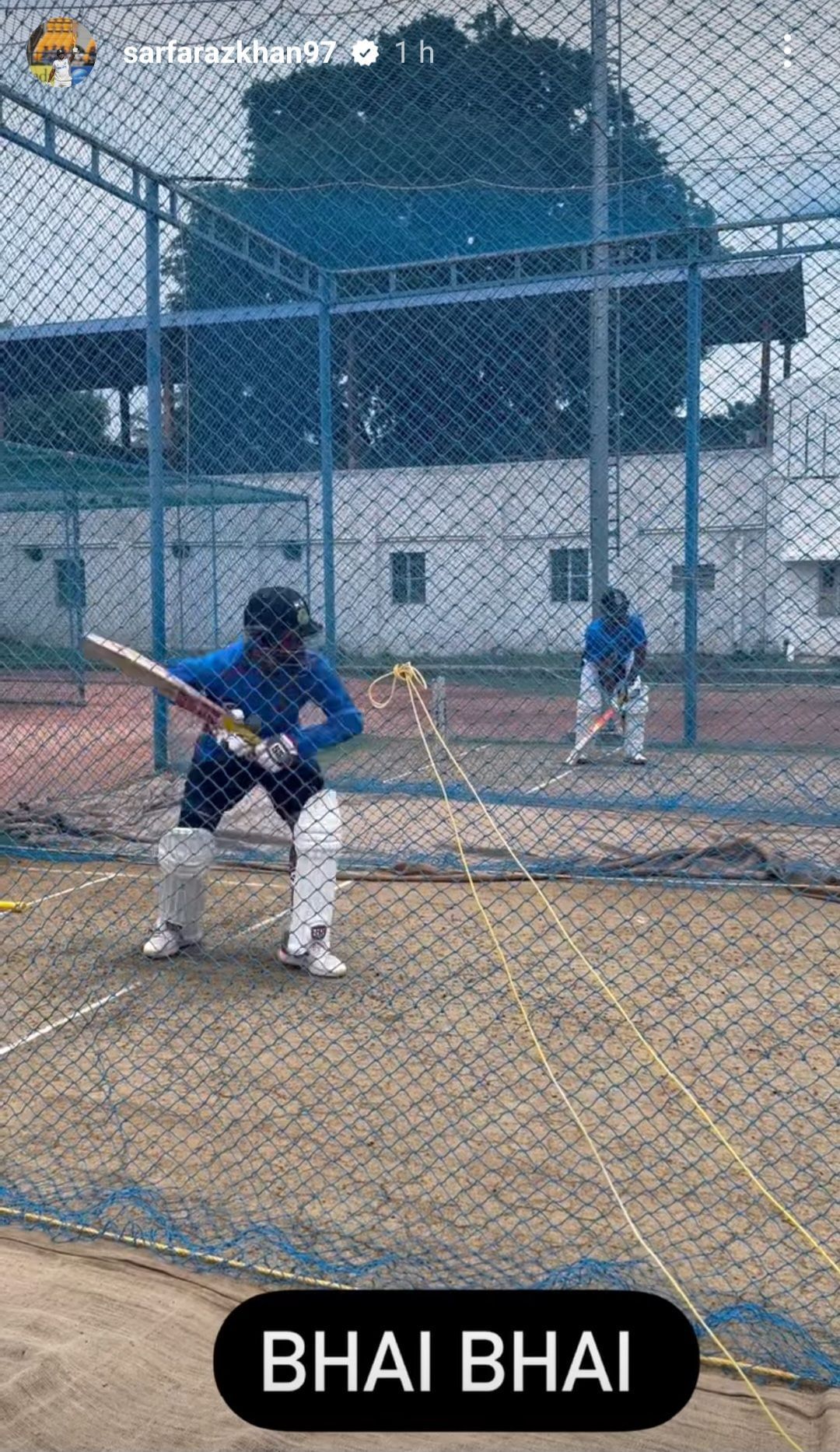 Ahead of the game, Sarfaraz Khan shared a video of himself putting in hard work in the nets alongside his brother Musheer Khan. Sharing the video on Instagram Stories, he wrote: