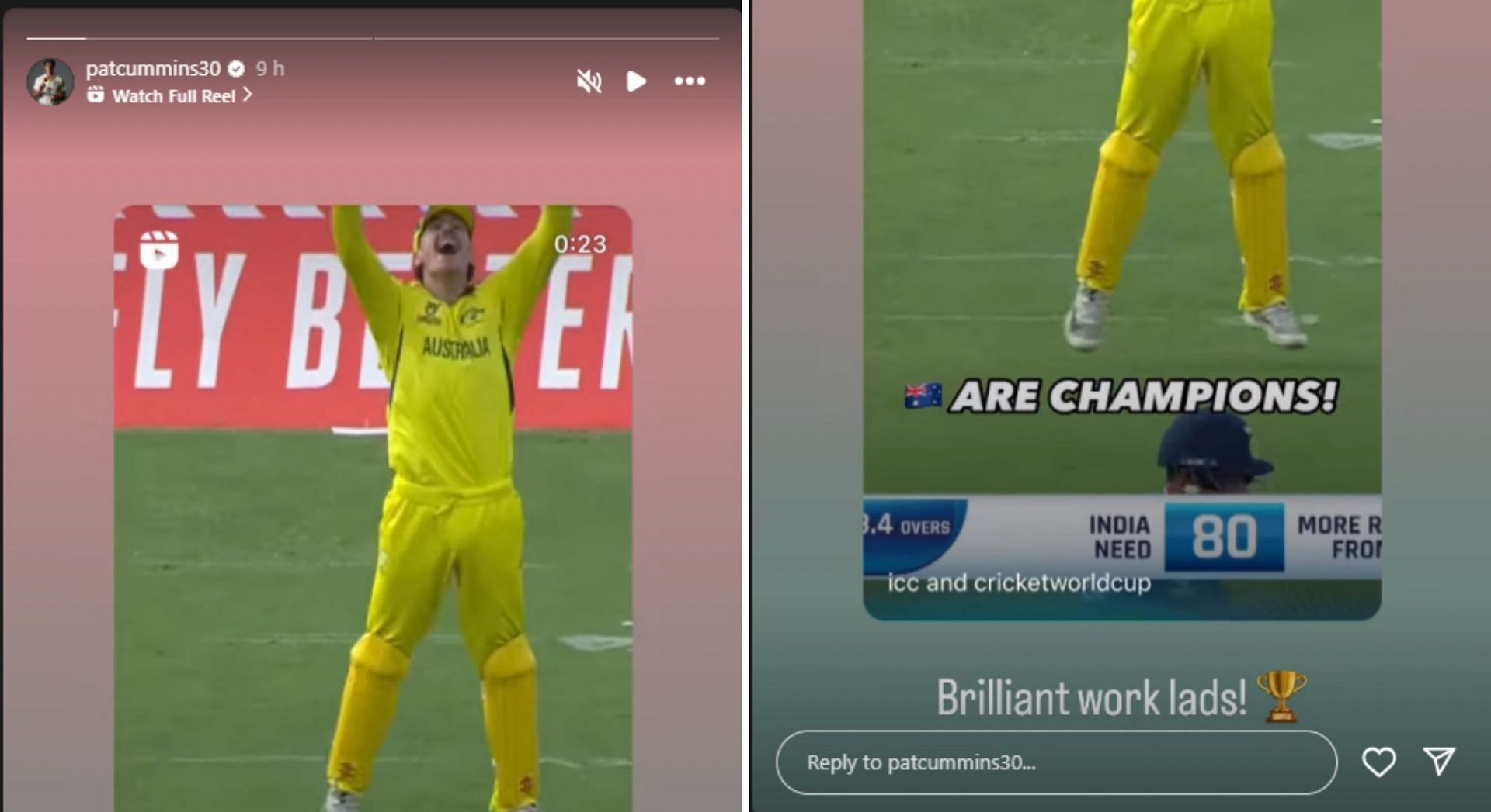Australian skipper Cummins shared an Instagram story from ICC and World Cup handle to congratulate the unbeaten u19 Australian team on their win. He wrote: