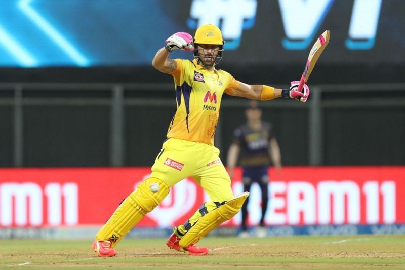 Ruturaj Gaikwad and Faf du Plessis stitched a 115-run opening stand and dominated the Kolkata Knight Riders bowlers. Varun Chakravarthy broke the partnership by dismissing Gaikwad on 64, but du Plessis and Moeen Ali have continued to attack the KKR bowlers.