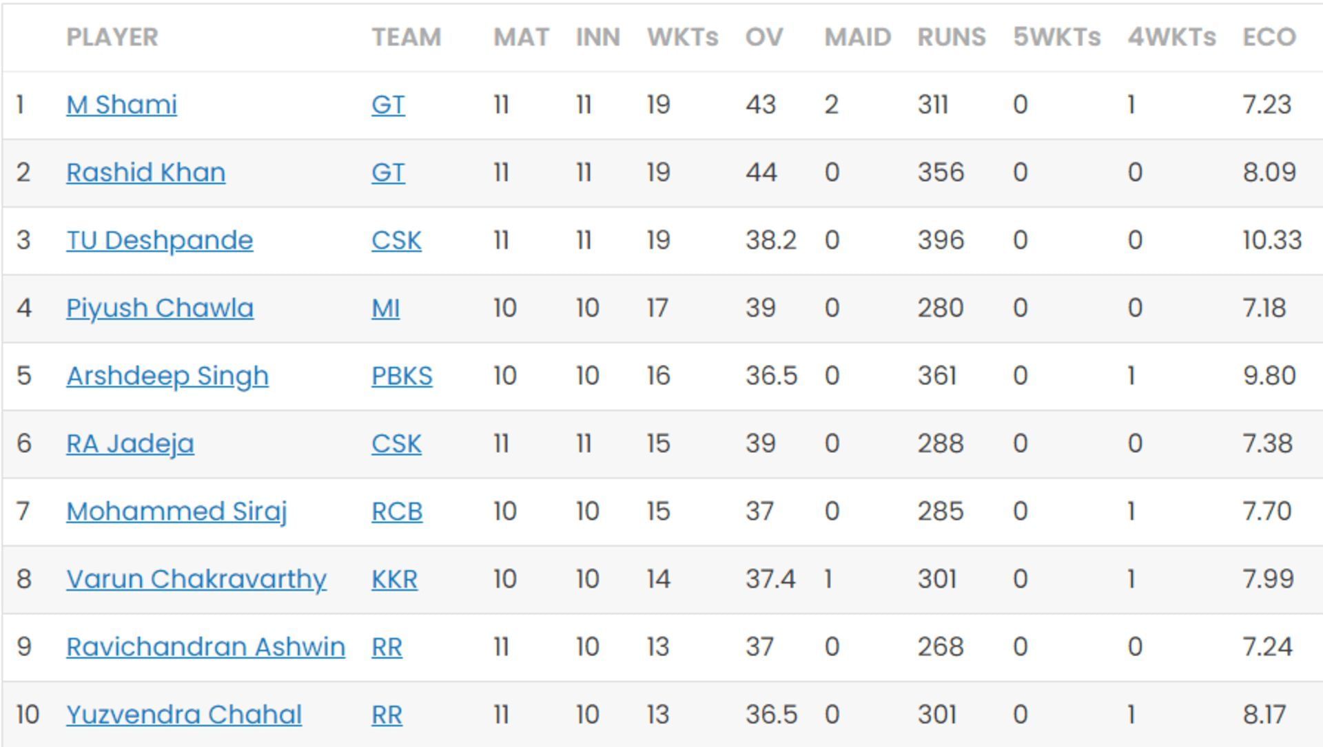 IPL 2023 Purple Cap updated list