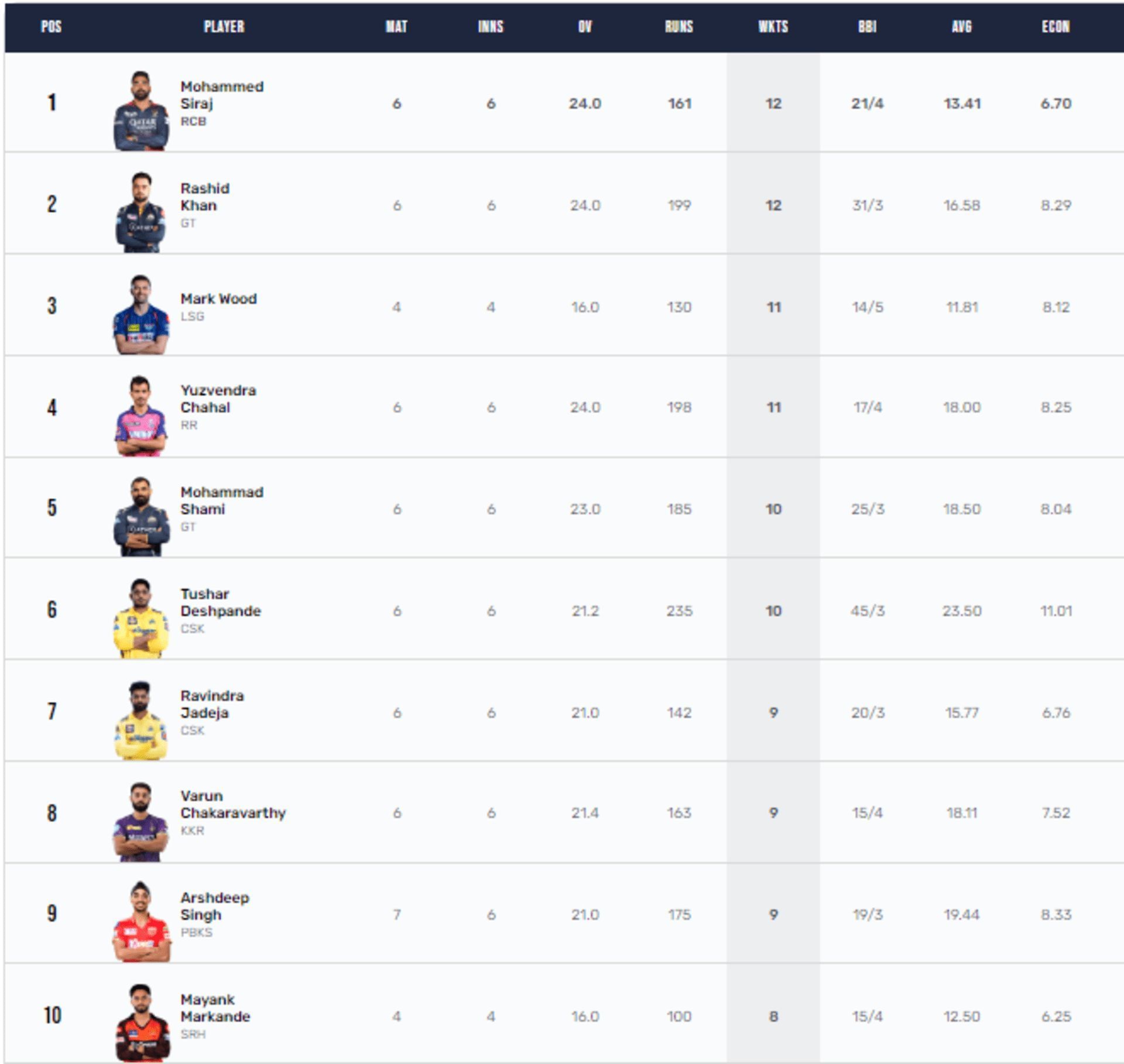 Among the leading wicket-takers in IPL 2023, Mark Wood missed the encounter against GT and he remains rooted with 11 wickets from four matches.