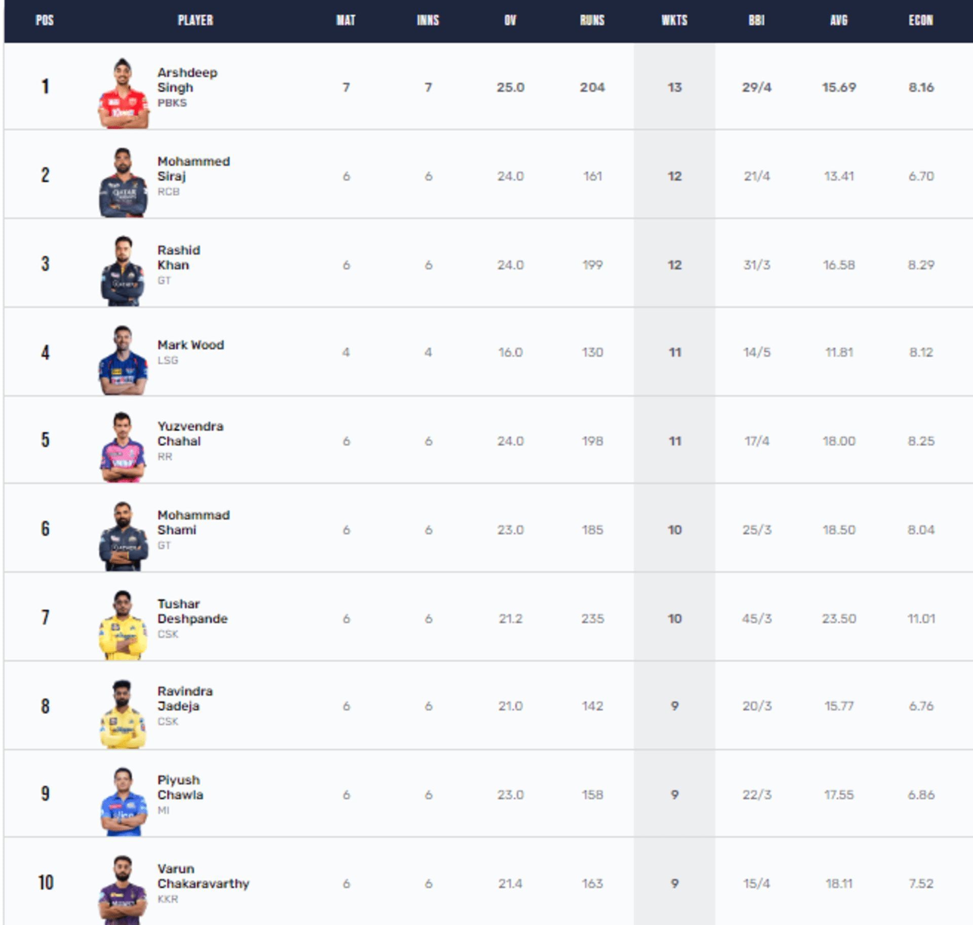 IPL 2023 Purple Cap updated list