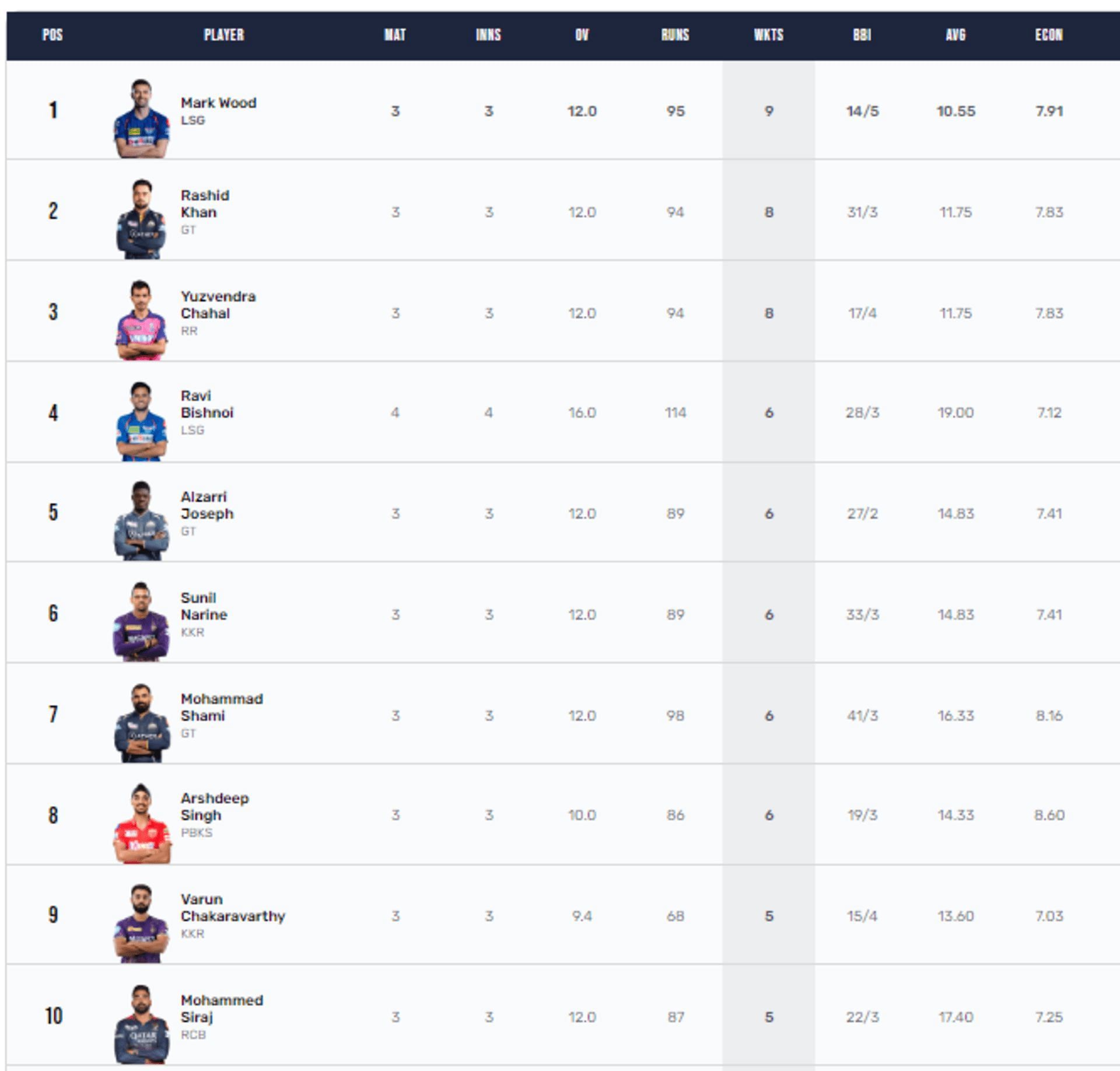The speedster bowled a rare maiden over and capped off his spell with the wicket of Glenn Maxwell with a 150kmph scorcher in the final over, resulting in figures of 1-32. He now has nine wickets off three matches and holds the Purple Cap.