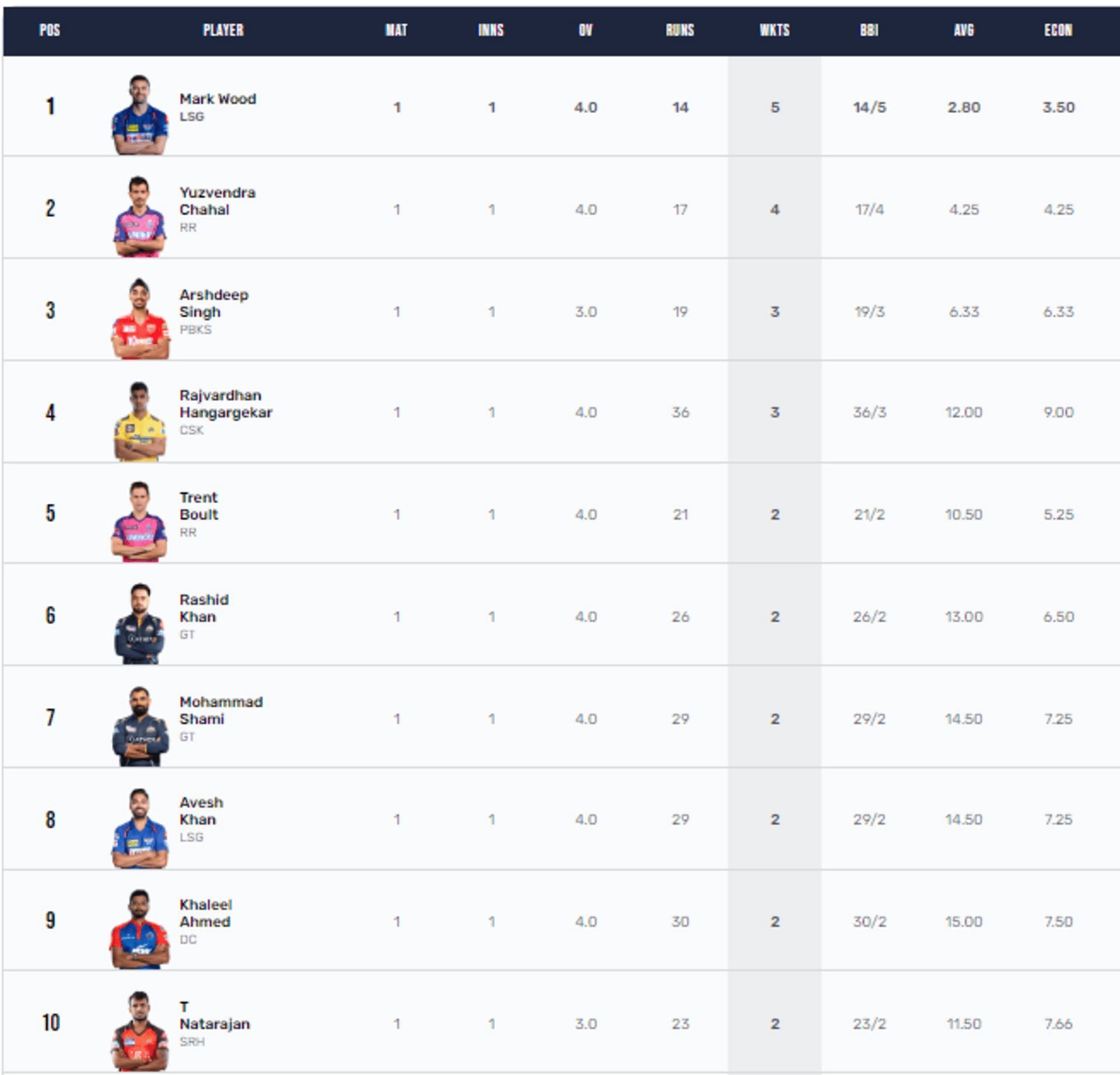 LSG pacer Mark Wood still holds the Purple Cap after beginning his 2023 campaign as well as his franchise debut with a five-wicket haul.