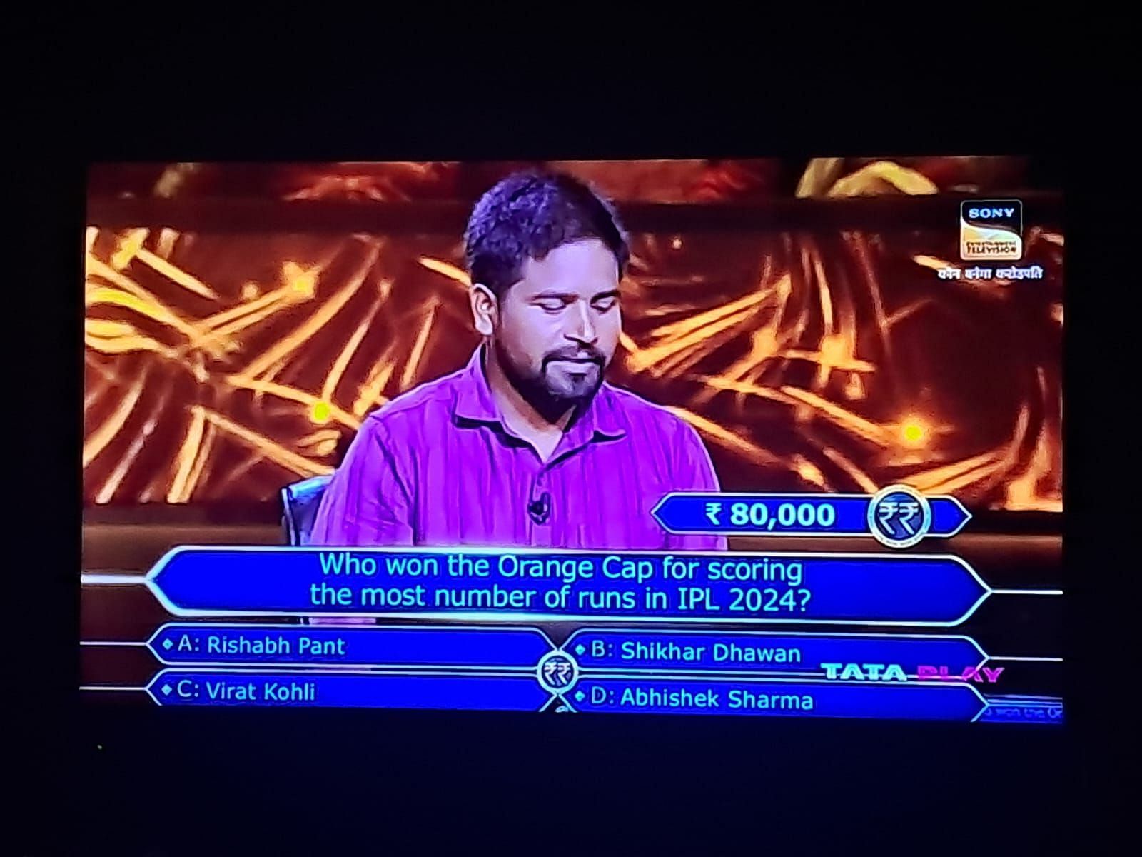 The popular reality quiz show Kaun Banega Crorepati (KBC)’s 16th season had a cricket-related question for ₹8,000 featuring the Indian Premier League (IPL) on Wednesday, August 14. The contestant was asked – "Who won the Orange Cap for scoring the most number of runs in IPL 2024?"