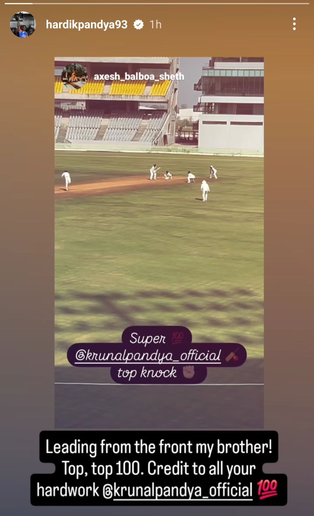 On Instagram story, Hardik expressed his pride for his brother, writing: