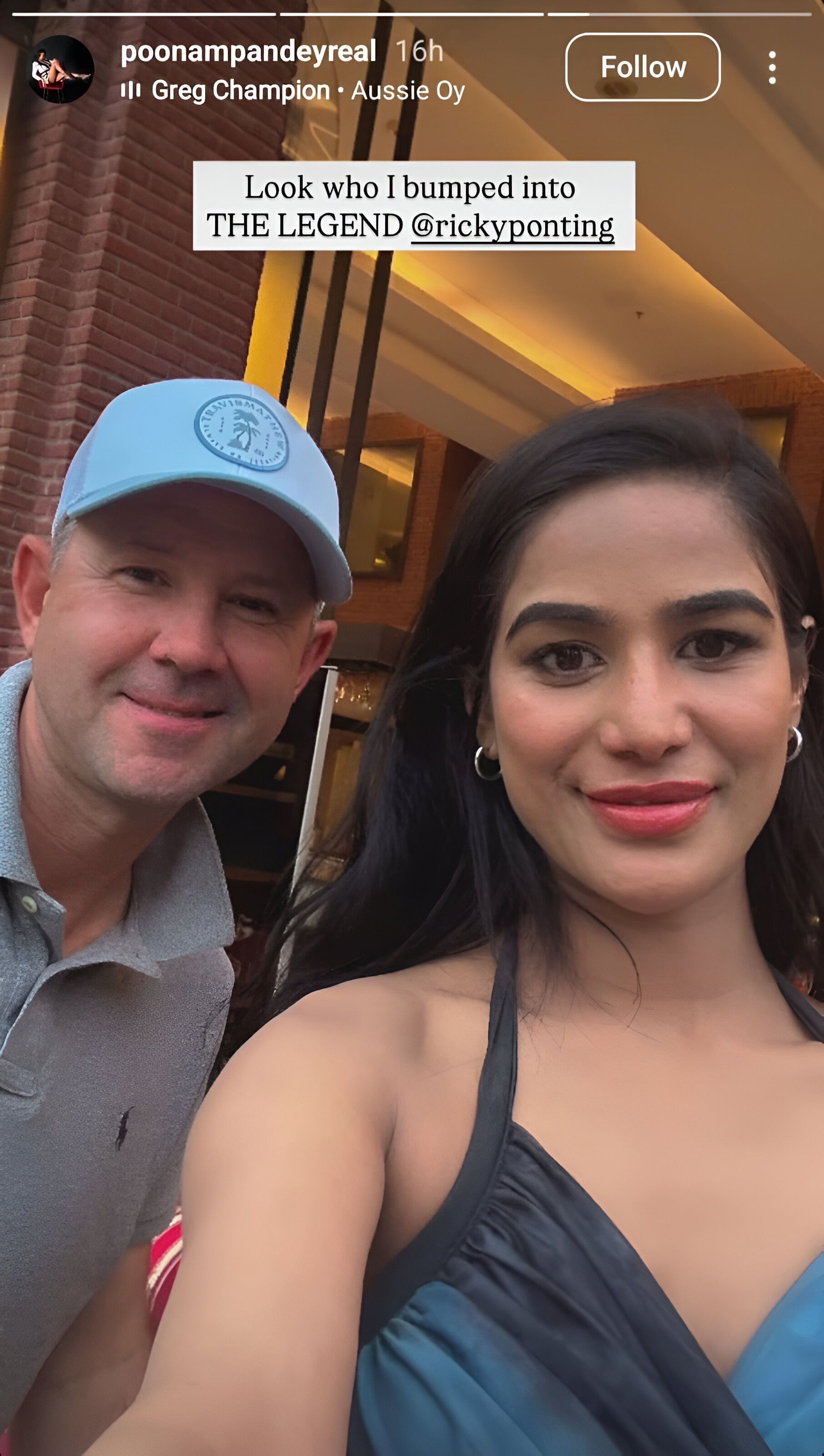 Poonam Pandey put up a picture of herself with Ricky Ponting on her Instagram story and also tagged him in the picture.