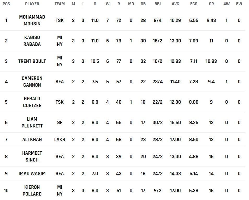 MLC 2023 Most Wickets List: Mohammed Mohsin stays on top