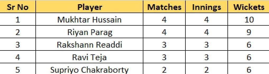 Riyan Parag led Assam from the front with both bat and ball. After hitting a sensational ton in the final, Parag registered figures of 2/33 in his four overs. Parag finished the Odisha T20 League 2023 with nine wickets to his name and finished below his teammate in the most wickets list.