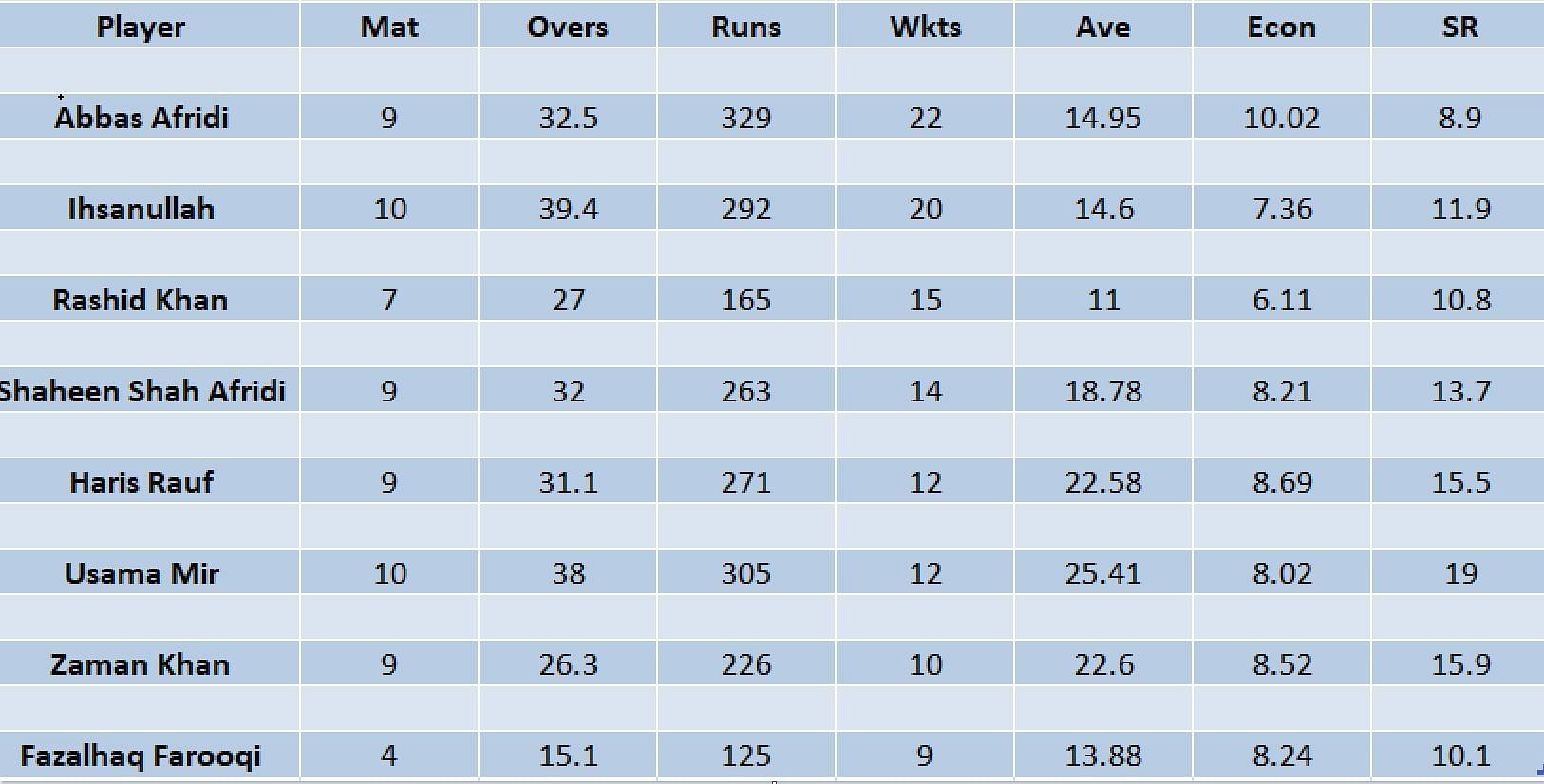 Abbas Afridi is the new leading wicket-taker of the tournament.