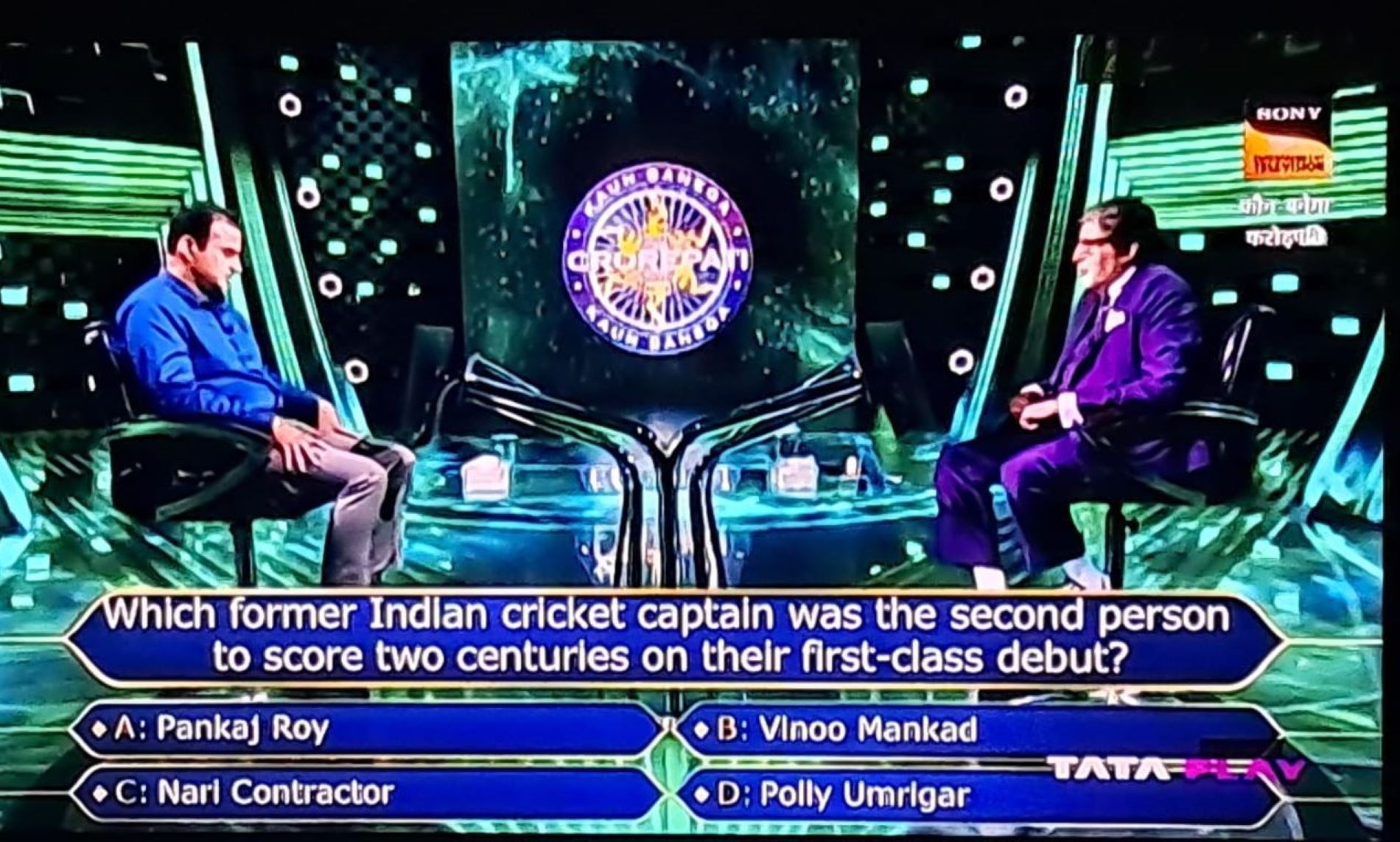 The contestant was given the unenviable task of deep-diving memory lane as the answer dated back over 70 years. He was asked to name a former Indian captain who scored twin centuries in their first-class debut.