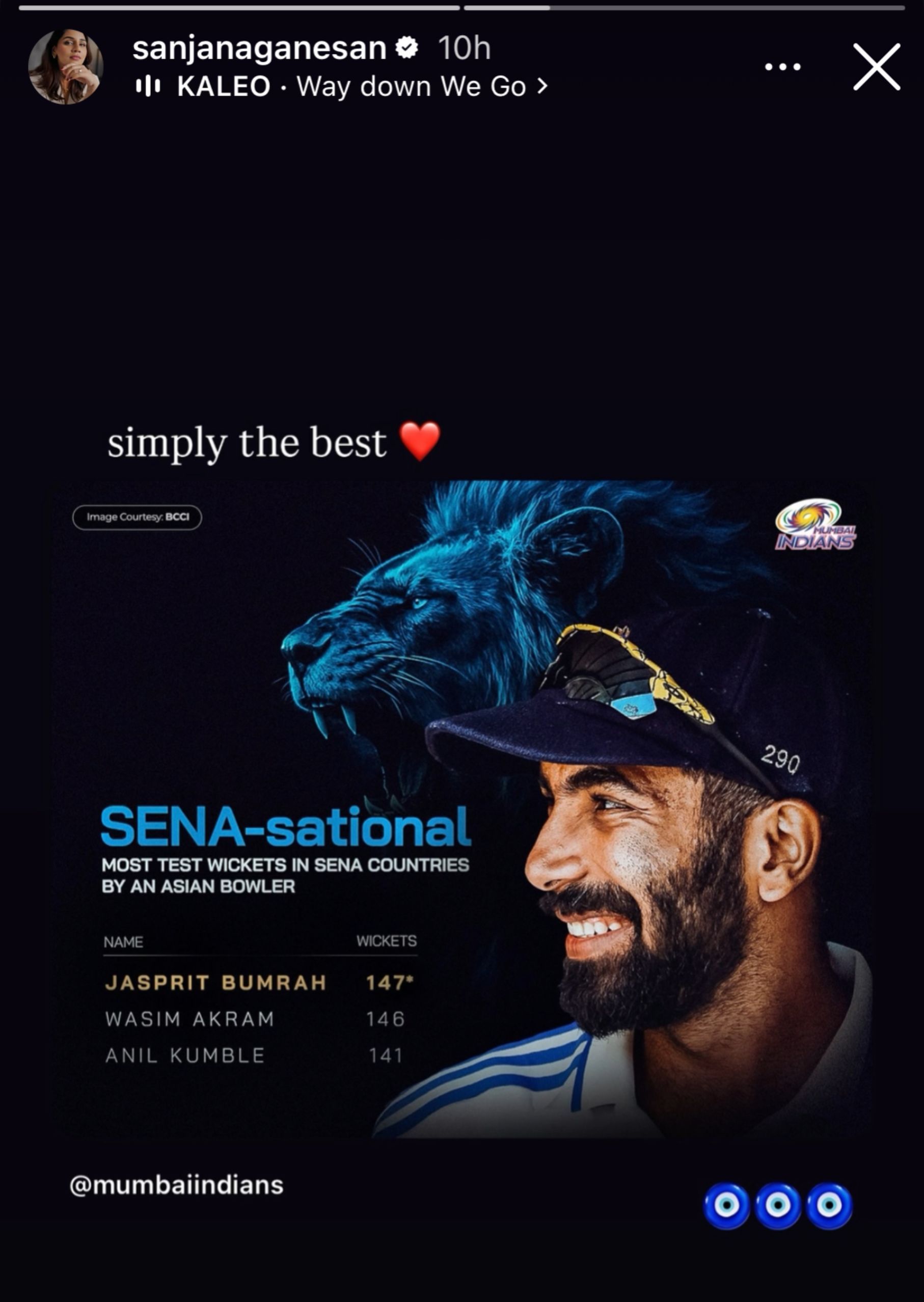 As the 31-year-old reached this incredible milestone, his wife Sanjana Ganesan dedicated an Instagram story to him, writing: