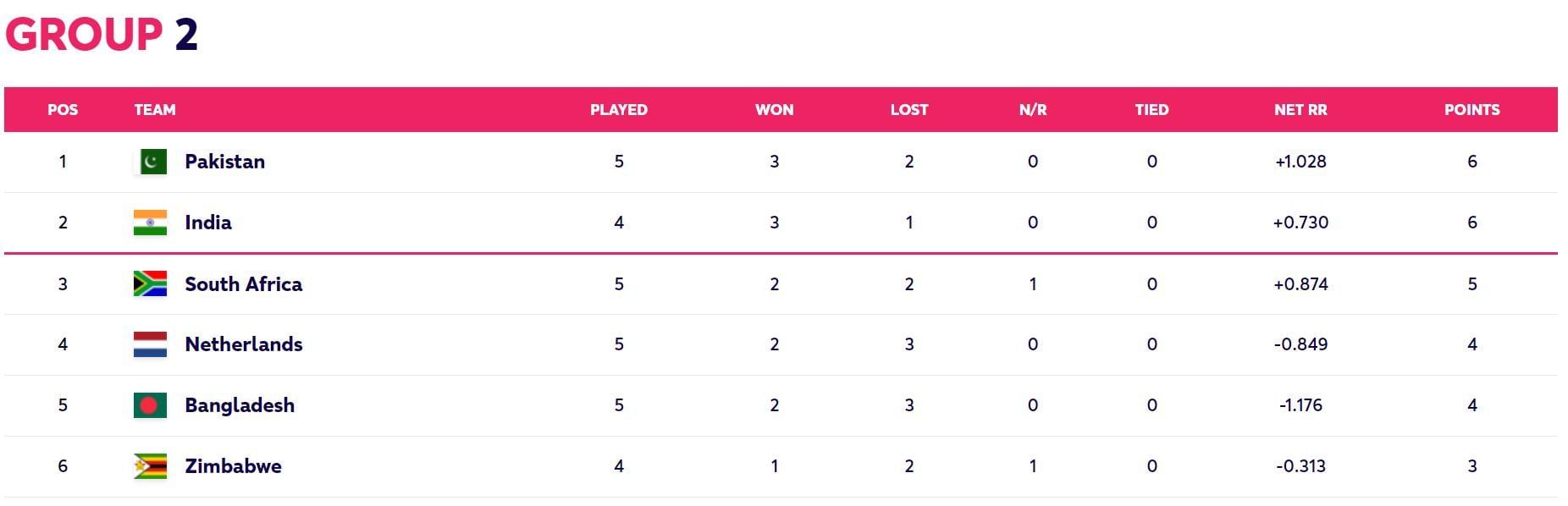 As far as India are concerned, they were managing pretty handsomely; however, the defeat against South Africa has left them striving. While Bangladesh are out of the tournament, the men in blue continue their race, keeping their hopes alive. After Pakistan came out victorious, it propelled India to the second spot with a game left to tackle versus Zimbabwe. The men in green now have an NRR of +1.028 and six points.