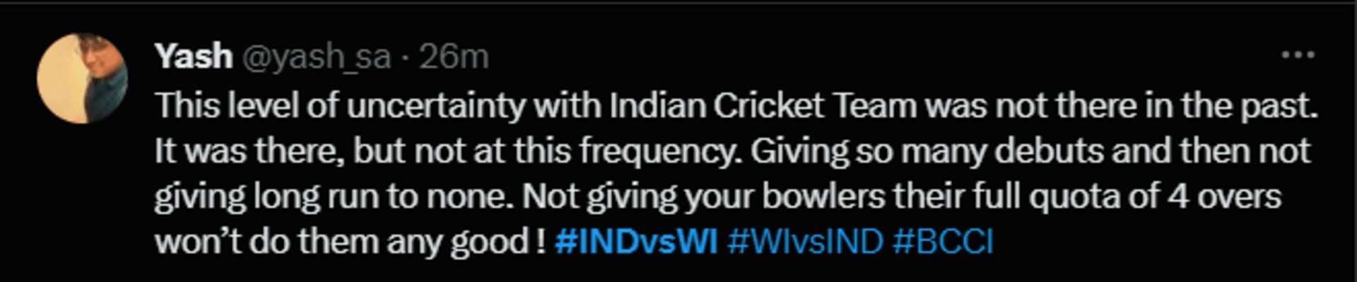 The fans highlighted Hardik Pandya's dodgy captaincy and the poor performances of several players, Yuzvendra Chahal and Shubman Gill in particular, on social media. Here are some of the most notable reactions on Twitter:
