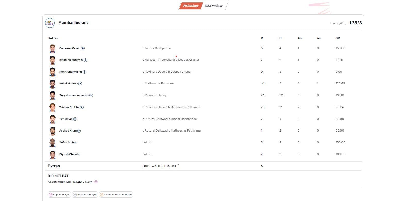 Click here to check out the MI vs CSK IPL 2023 scorecard here.