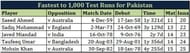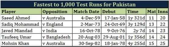 Pakistan's talented young opener has had a fabulous start to his test career scoring 718 runs, including 3 centuries, in only 15 test innings. He needs another 282 runs to reach a 1,000 test runs and he has the opportunity to create a Pakistan record of becoming the fastest batsman to reach 1,000 test runs. The record right now is held by Saeed Ahmed who required 20 innings to complete 1,000 test runs.