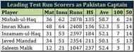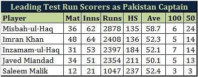 Pakistan's test captain has already achieved so much while captaining the team that there doesn't seem much left for him to do. He has taken Pakistan to number 3 in the test rankings, he has won more tests as captain than any other Pakistan captain, he has scored more runs as captain than any other Pakistan captain, and he has led Pakistan more times than everyone else, except for the great Imran Khan.