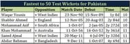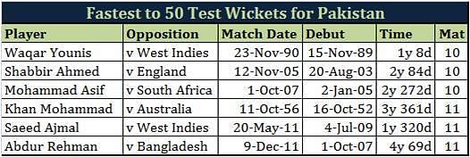 Yasir Shah also has time on his side as it has only been 235 days since his Test debut against Australia in October last year. No one has achieved the feat of picking up 50 test wickets for Pakistan within a year of his debut.