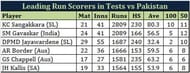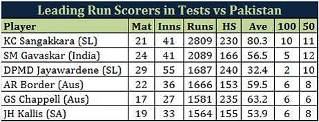 No one has scored more test runs or test centuries against Pakistan than Sangakkara has.