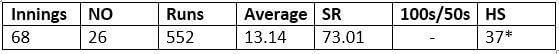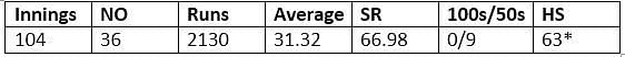 With a strike rate of 66.98, one might assume Harris was too slow for the ODI format but he was someone who had the ability to knock the ball around and help in building partnerships.