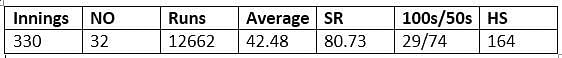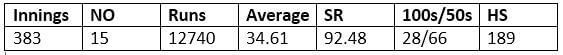 He scored 12740 runs as an opener at an average of 34.61, scoring 28 ODI hundreds and his career-best knock of 189 came against India at Sharjah in 2000.
