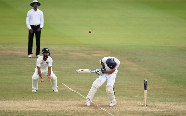 And so it seemed for the first hour and fifty nine minutes. England’s overnight batsmen, Joe Root (52) and Moeen Ali (39) had taken the score to 173/4, almost exactly a third of their task negotiated in just under a third of the time available. The first three days’ travail by swing were a distant memory and the spinner, Jadeja, had not taken a wicket for over 150 balls.