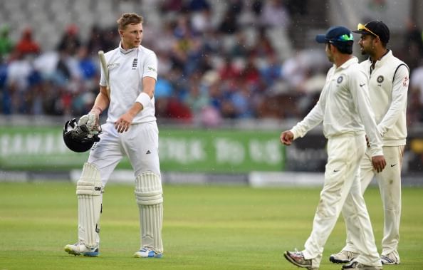 Joe Root (48 batting) and Jos Buttler (22 batting) were at the crease.