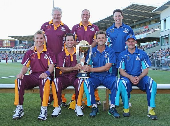 Ponting’s side included Matthew Hayden, Brett Lee, Ian Healy, Dean Jones and Richmond great Matthew Richardson, who were all sporting Mowbray’s maroon and yellow. They took on an opposition captained by Adam Gilchrist and boasting the likes of Michael Hussey, Justin Langer, Merv Hughes and AFL star Jarryd Roughead.