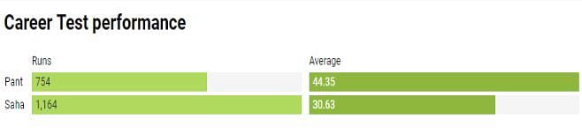 While Pant has played 11 games in his career thus far and has much better numbers than Saha, who has turned out in 32 matches in the longest format, the former's inexperience with both bat and gloves has often led to criticism.