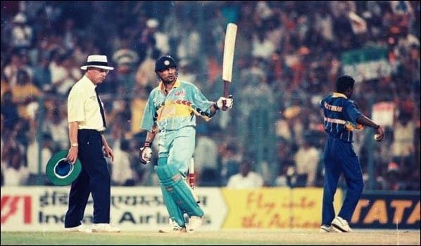 After hitting a century earlier in the tournament, Tendulkar scored yet-another century, this time against Sri Lanka. The Lankans chose to field first after winning the toss. India lost opener Manoj Prabhakar for just 7 off 36.
