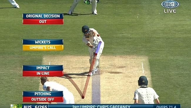 It all went downhill in the very first test. Stuart Broad slipped in one of his specials, very full and very straight. Watson was given out LBW, and he reviewed it. To the naked eye, it looked high. But for Hawkeye, it only needed to clip the bails – and it did. Watson frowned, looked at the pitch and shook his head. Referral unsuccessful.