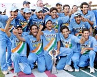 India started their chase in a clinical manner, with Gautam Gambhir and captain Rahul Dravid setting the stage and maintaining the momentum. With the score at 69 runs, Gambhir slashed a wide delivery that was going away and was caught by the keeper. In walked Yuvraj Singh, who was in excellent form in the series.