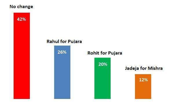 While the majority of you (42%) chose to have the side play unchanged, there were several who would rather see Pujara sit out the second Test. 26% wanted KL Rahul to replace Pujara and 20% of you wanted Rohit Sharma to take the Gujarat batsman’s spot.