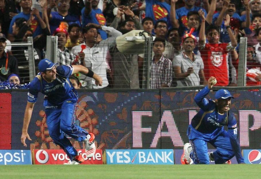 In the match between Rajasthan Royals and Kings XI Punjab in Pune at the start of the season, when Bailey had hit the ball towards the long-on boundary, nothing less than a six seemed the likely outcome. However, Southee and Nair had other things in mind. Initially, the New Zealander leaped as high in the air as he could and stuck out his right hand to seemingly pull off a stunner. His momentum, however, was forcing him over the boundary rope, as a result of which he had to put the ball back into the field of play. Thankfully, though, Nair had the presence of mind to play the supporting act to Southee and dive at the last second to complete arguably the best tag-team catch ever.