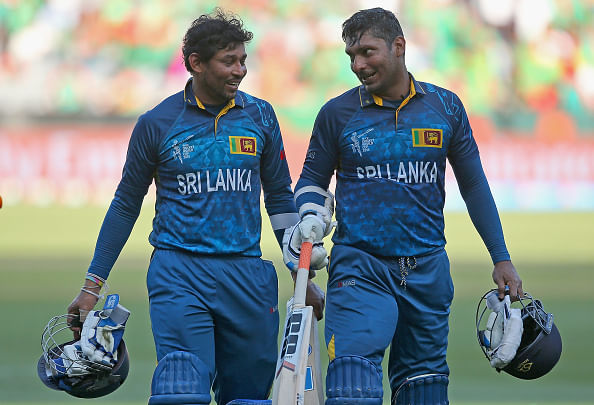 Dilshan hammered 22 boundaries in his 146-ball knock while Sangakkara smashed 13 fours and the lone six in his 76-ball innings.