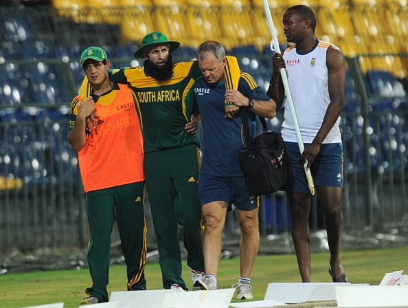 Hashim Amla, who missed the first game due to a neck-strain, was injured in the field and could not participate with the bat. That proved to be a heavy blow as the Proteas lost early wickets once again as Robin Peterson and JP Duminy departed quickly.