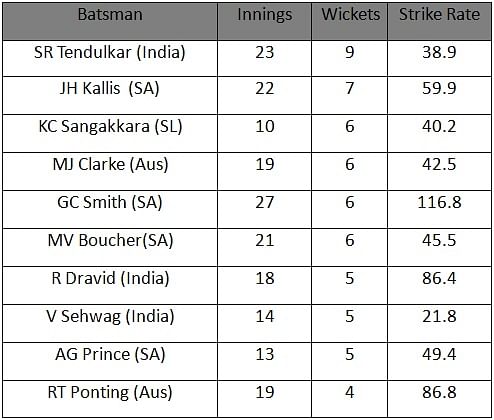 Sachin Tendulkar has been the favorite prey of James Anderson in Tests. He has got Sachin’s wicket on 9 ocassions. Next on the list is South African allrounder Jacques Kallis.
