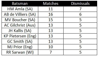 Here is the list of batsmen Sreesanth has dismissed most number of times in International cricket. Hashim Amla, who is a good player of pace, lost his wicket to Sreesanth seven times in 11 matches. It won’t be wrong if we say Sreesanth bowls extremely well against South African batsmen, as five South African batsmen are part of this list.