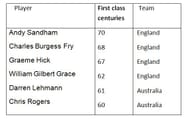 Chris Rogers had 60 first class centuries before scoring his first Test hundred for Australia. There are five other batsmen who had more first class centuries while scoring their maiden test hundred.