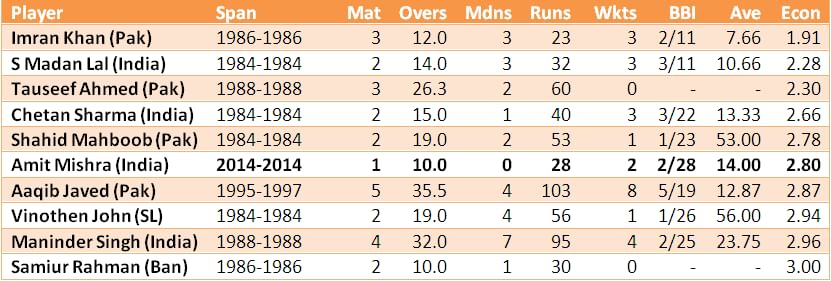 Mishra’s bowling figures of 2 for 28 from his 10 overs were the sixth best economical bowling figures in Asia Cup history (bowlers who have bowled a minimum of 10 overs is only considered). Former Pakistan skipper Imran Khan heads the list with an economy rate of 1.91.