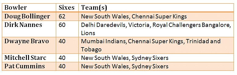 Here is a list of bowlers who have conceded the most number of boundaries in the four completed seasons of Champions League T20. Having conceded 62 fours, the New South Wales and Chennai Super Kings fast bowler Doug Bollinger tops the list.