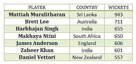 The Sri Lankan spin wizard Muttiah Muralitharan leads the way in terms of most number of wickets taken since the year 2000 in all formats of the game. Former Australian paceman Brett Lee comes in at 2nd place.